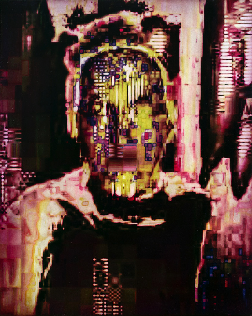 In den Gemälden von Kamila B. Richter sowie in den digitalen Arbeiten von Michael Bielický dreht sich alles um die Frage nach der Bildrealität. Während Kamala B. Richter noch klassisch in Ölmalerei malt, nimmt sie die verpixelten, „gestörten“ Fotografien von Mobiltelefonen, Bildschirmen oder Bildschirmscreens ausschließlich als Ausgangspunkt. Erst bei längerem Hinsehen fügen sich die Motive fragmentarisch wieder zusammen. Im Fokus ihres Interesses steht die medialisierte Wirklichkeit von heute, das Maschinensehen – die Darstellung dessen, was das menschliche Auge verborgen bleibt. Für Richter wird das limitierte Phasenbild unscharfer Videos so zum eigentlichen Abbild von Realität. Diese verfremdete, medialisierte Realität als Bildinhalt und die altmeisterliche Technik der Ölmalerei, in der sie ihre Werke in wochenlanger Schichtungs-Arbeit umsetzt, machen die Spannungsverhältnisse der heutigen visuellen Kultur sichtbar und erfahrbar. Mit ihrem Partner Michael Bielický wendet sie sich zuweilen auch ganz der Digitalwelt zu.