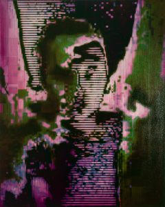 Kamila B. Richter, To Err Is Divine V, 2018-2019, digital error, india ink, amber, oil on canvas, 150 x 120 cm © Courtesy of the artist